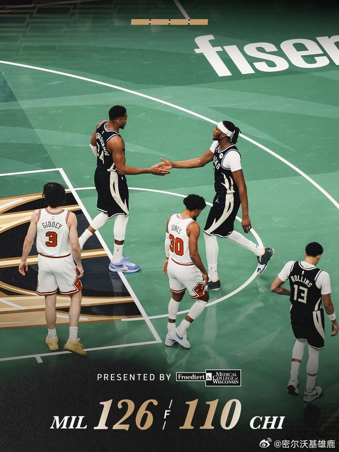 雄鹿126-110公牛,字母哥41+15+9准三双,罗林斯20分